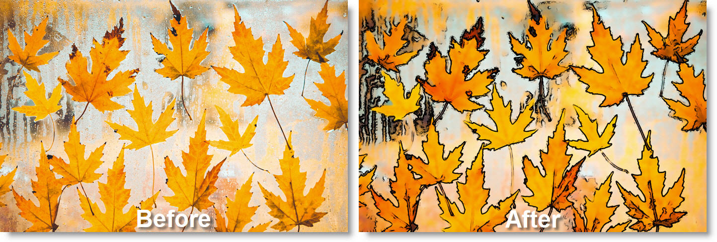 Generates a cartoon look. Finds the edges in the image and draws new outlines for those edges. Smooths the colors of the areas between the edges, and optionally posterizes the colors into fewer color values.