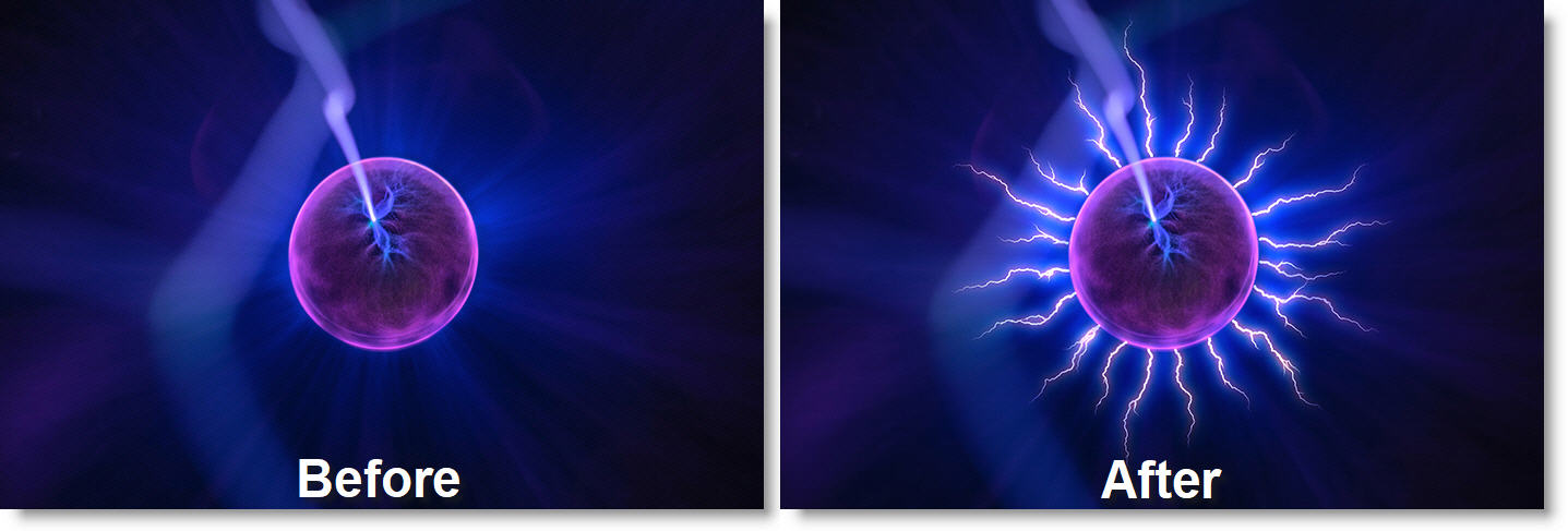 Generates multiple lightning bolts outwards from the edges of objects.