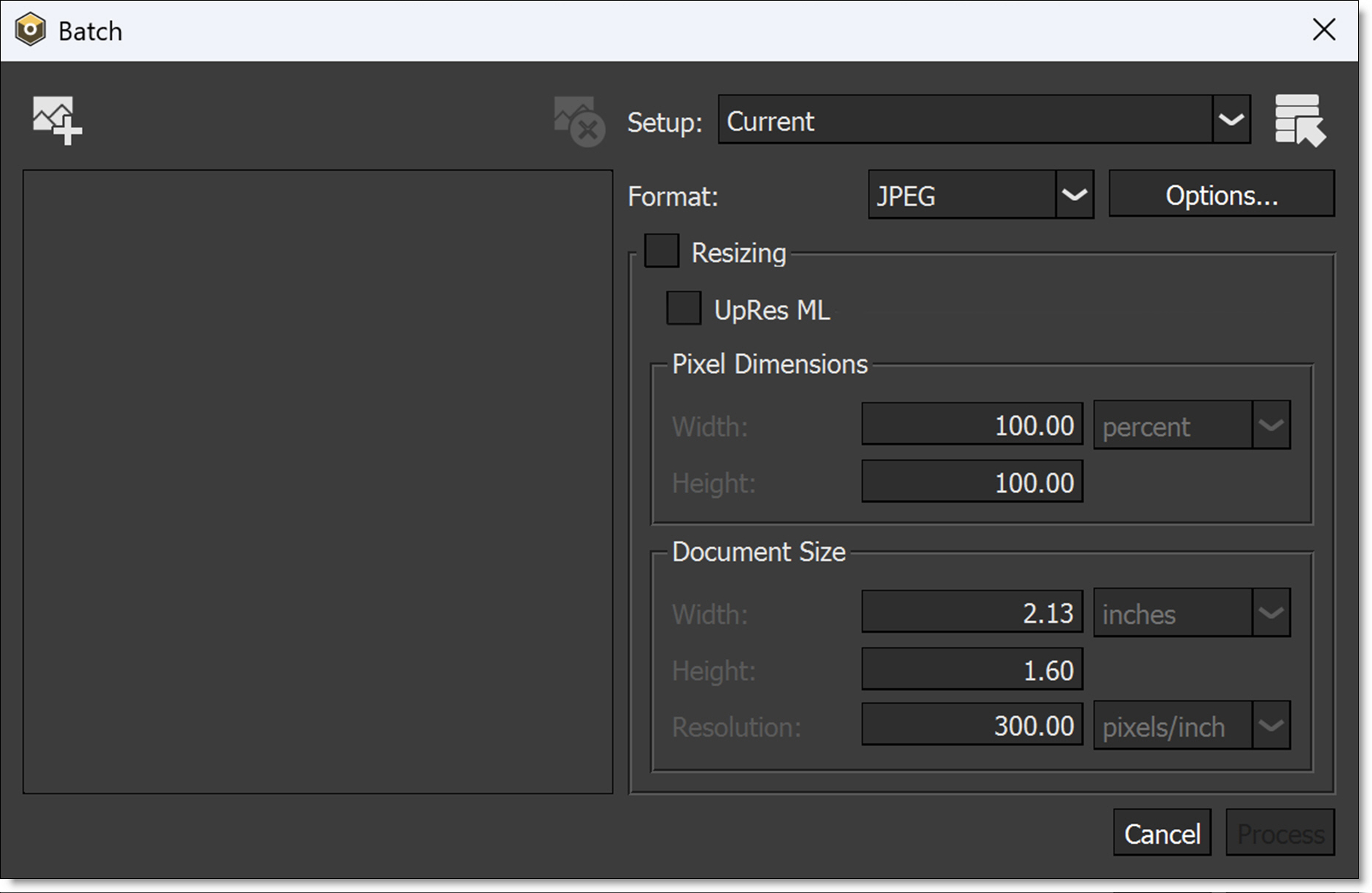 In addition, if you activate and set the Resizing options, the entire list of files will be resized.