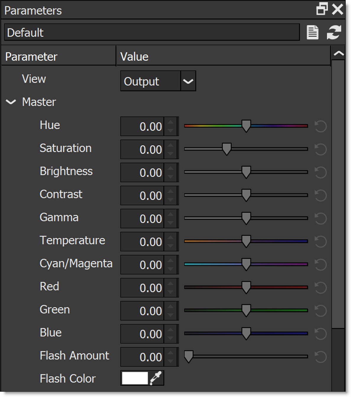The Parameters window allows you to adjust a filter’s parameters which will in turn update and change the image in the Viewer.